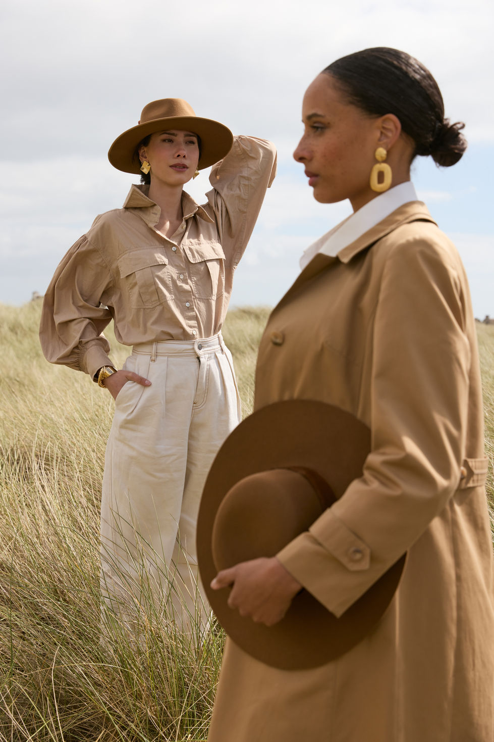 Sous l’œil affûté de Charlaine Croguennec, chaque image capture la fusion entre vêtement et environnement, révélant l’essence même des pièces signées Léoncie. La mise en beauté, confiée à Elodie Struillou, vient sublimer cette esthétique naturelle et épurée, mettant en lumière la singularité des mannequins Céline Hillion et Chloé Briche à travers des teints lumineux et des coiffures subtilement travaillées.