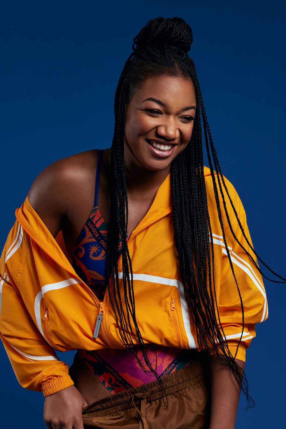 Le stylisme joue sur deux ambiances : un premier univers coloré, où les superpositions de vêtements traduisent l’énergie et la spontanéité de l’athlète. Puis un mood plus sombre et graphique, qui mettent en valeur sa puissance et son charisme naturel.